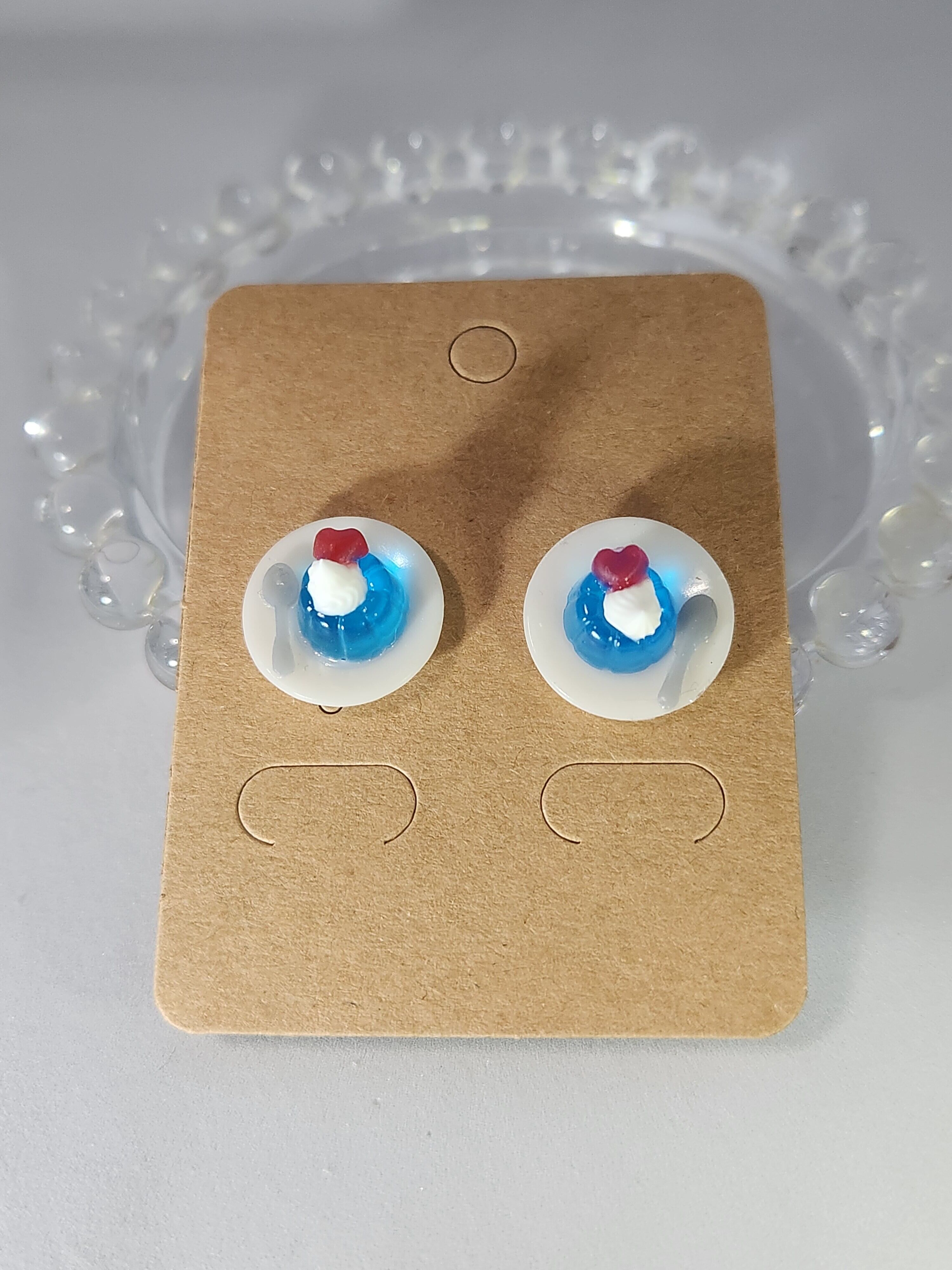 キュートなネオンカラーのゼリーのピアスです。ちっちゃなお皿にクリームを絞ったゼリーとちっちゃなスプーンを添えて。耳元をコロンと可愛く彩ります。カラーはレモン、メロン、ソーダ、グレープ、オレンジ、ピーチの6色あります