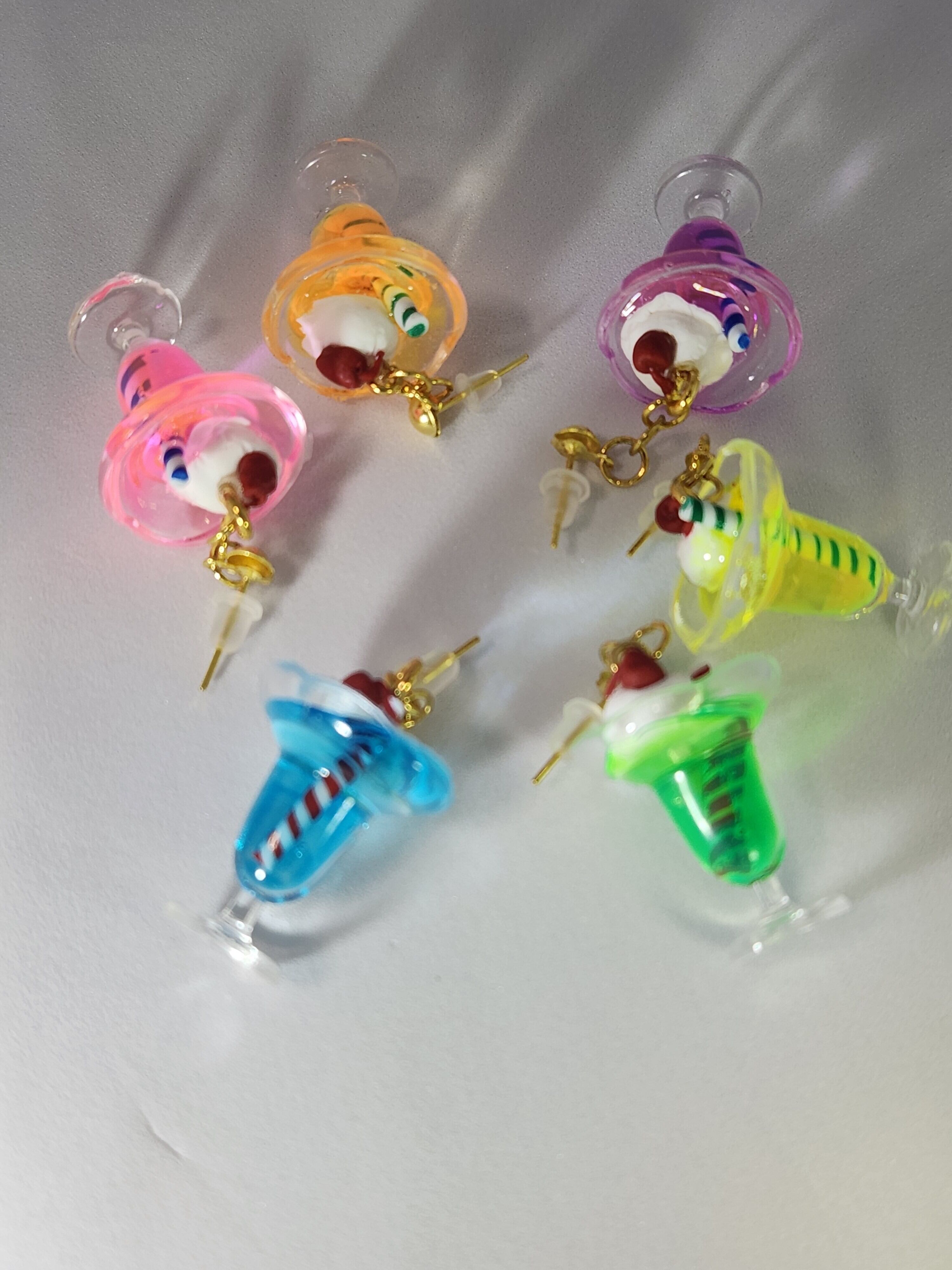 キュートなネオンカラーのクリームソーダのピアスです。キラキラネオンカラーのソーダにアイスクリームとチェリーをのせたクリームソーダにストローをさした見ていてワクワクするちっちゃなクリームソーダです。耳元でゆらゆら揺れるタイプのピアスです。カラーバリエーションは、ブルーハワイ、メロン、ピーチ、レモン、グレープ、オレンジの6色になります
